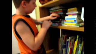 My son Cole, who is 8 years old and diagnosed with Autism Spectrum Disorder and Obsessive Compulsive Disorder. He spent an hour reorganizing these books, taking them back down if they would...